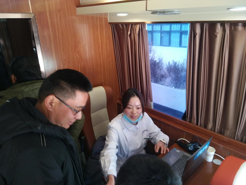 我院高度重視此次公益活動,組成15人義診巡回醫(yī)療服務(wù)隊,委派體檢車輛2輛,攜帶彩超1臺、血糖儀2部、血氧飽和度檢測儀各2部及聽診器等醫(yī)療設(shè)備對日喀則市教育局進(jìn)行免費(fèi)義診活動。主要義診內(nèi)容包括:內(nèi)科常規(guī)檢查、外科常規(guī)檢查、胸部正位片、肝膽脾胰彩超、雙腎輸尿管彩超、子宮附件彩超、前列腺彩超、尿常規(guī)、血常規(guī)、腎功能、血脂四項、心電圖、血壓監(jiān)測、心肺聽診、血糖檢測、血氧飽和度等并建立健康檔案。